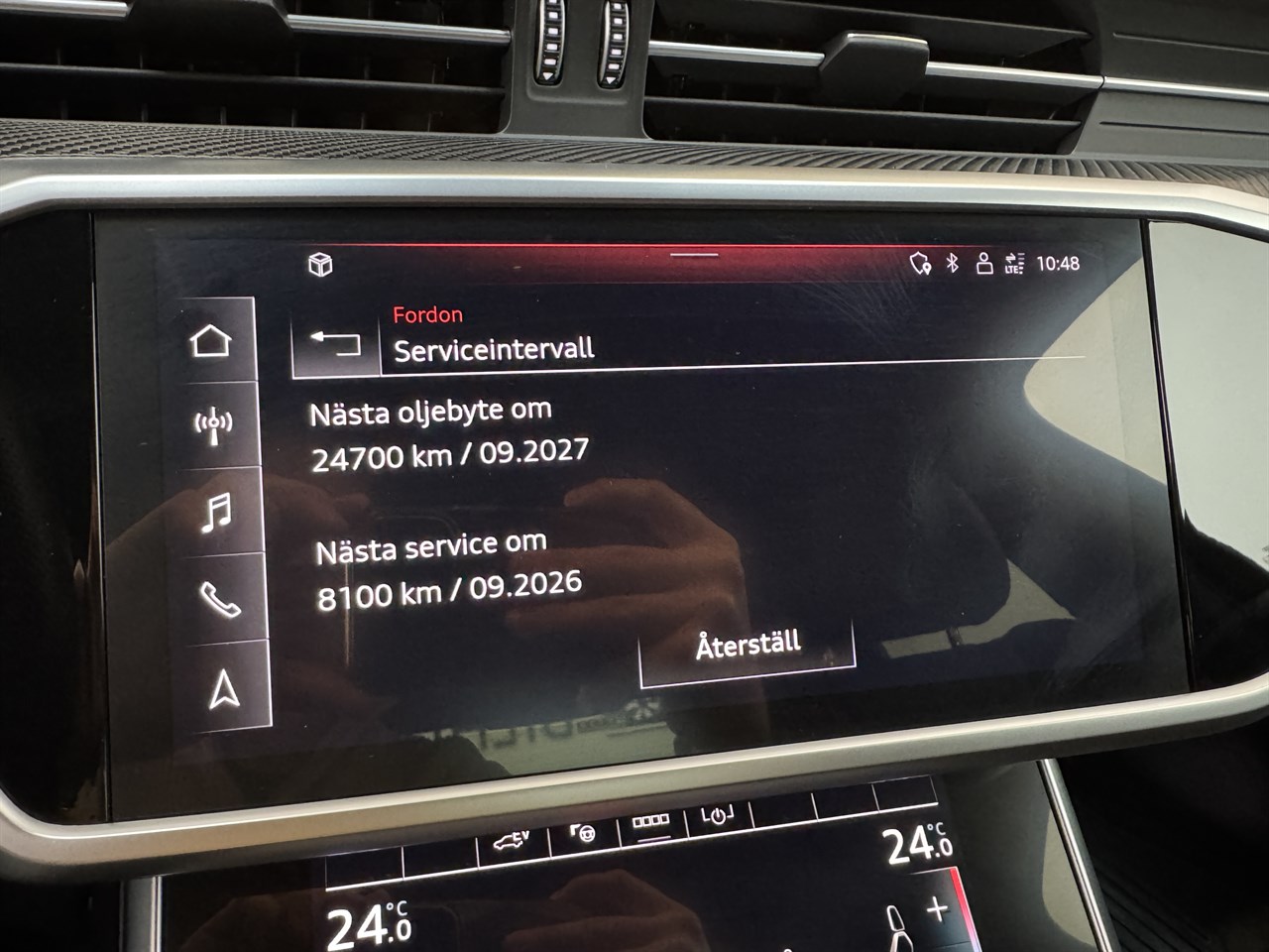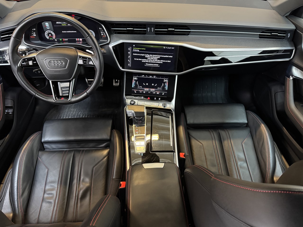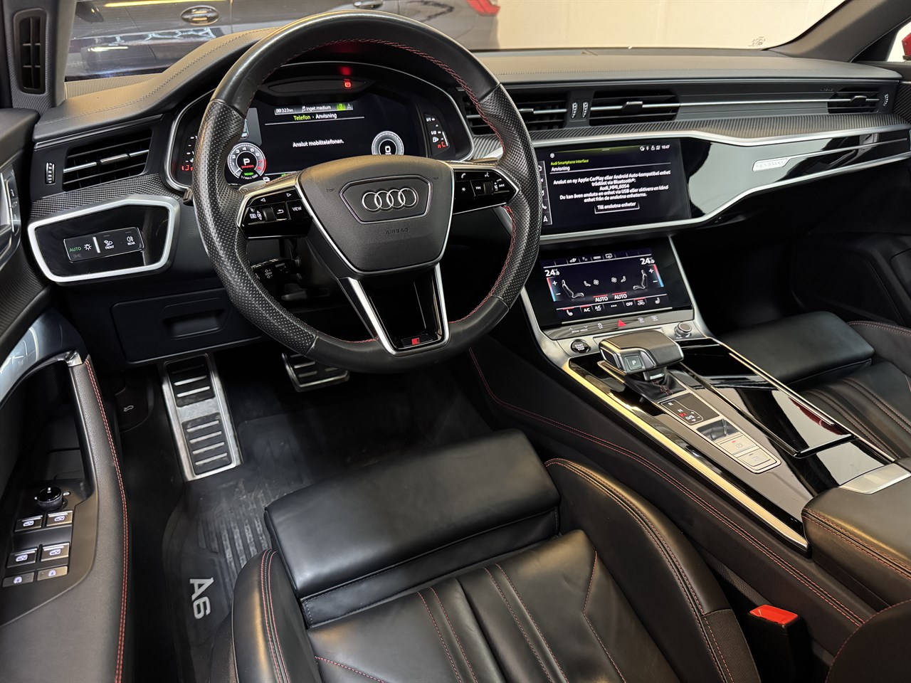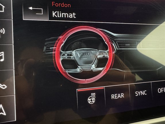 En fin och välhållen Svensksåld bil. Årsskatt 360kr. 2 Brukare. Besiktigad tom 2027-01-31. Senaste service 2025-09-25. Komplett servicehistorik. S-Line paket. Adaptiv farthållare. Infällbar dragkrok. Navigation. 360 Kamera. 3D kamera. Helläderklädsel. Bang Olufsen 3D ljudpaket. Quattro fyrhjulsdrift. Svarta högglanspolarede lister. Apple Carplay. Android Auto. Rattvärme. 4-zone deluxe automatic air conditioning. LED Matrix strålkastare. Död-vinkel varning. S-Line Sportstolar. Kolfiberinlägg. Parkeringsassistans. Svart innertak. Cockpit cluster. Lane Assist.